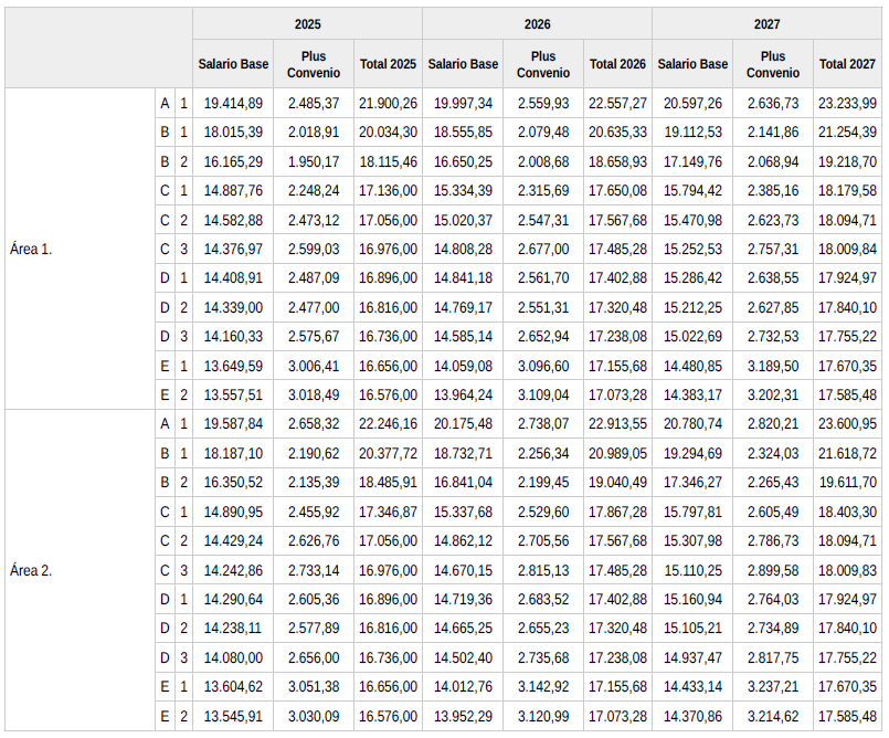 > Área funcional 1 y 2 del Convenio Colectivo: