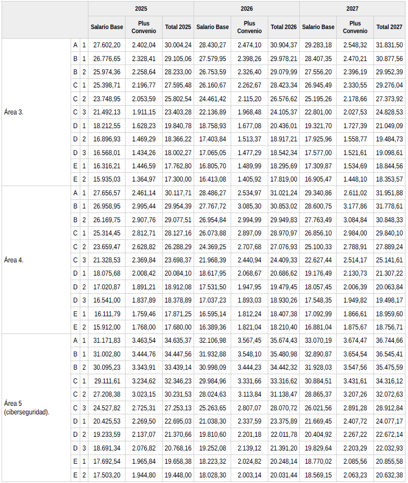 > Área funcional 3, 4 y 5 del Convenio Colectivo: