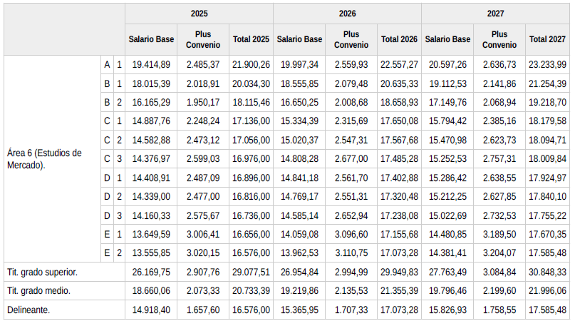 En caso de que el Salario Mínimo Interprofesional (SMI) que se publica en el «Boletín Oficial del Estado» (BOE), sea superior al salario anual fijado para ese año en las tablas salariales (salario base + plus convenio), los niveles profesionales afectados serán actualizados al Salario Mínimo Interprofesional, debiendo garantizarse entre los niveles profesionales una diferencia salarial de 80 euros.