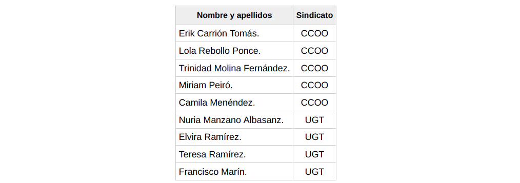 – Rocío Valverde Mérida (CCOO).