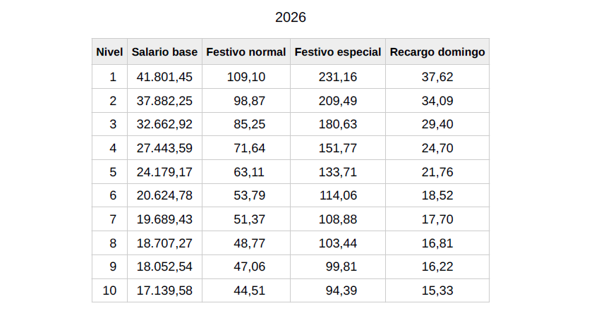 Una vez publicado el IPC real del año 2026, el incremento porcentual con respecto a las tablas salariales del año 2026 queda fijadas con el incremento de un 3,4 %, para los conceptos fijados en los anexos I y II y artículo 54.b) del convenio, quedando como siguen: