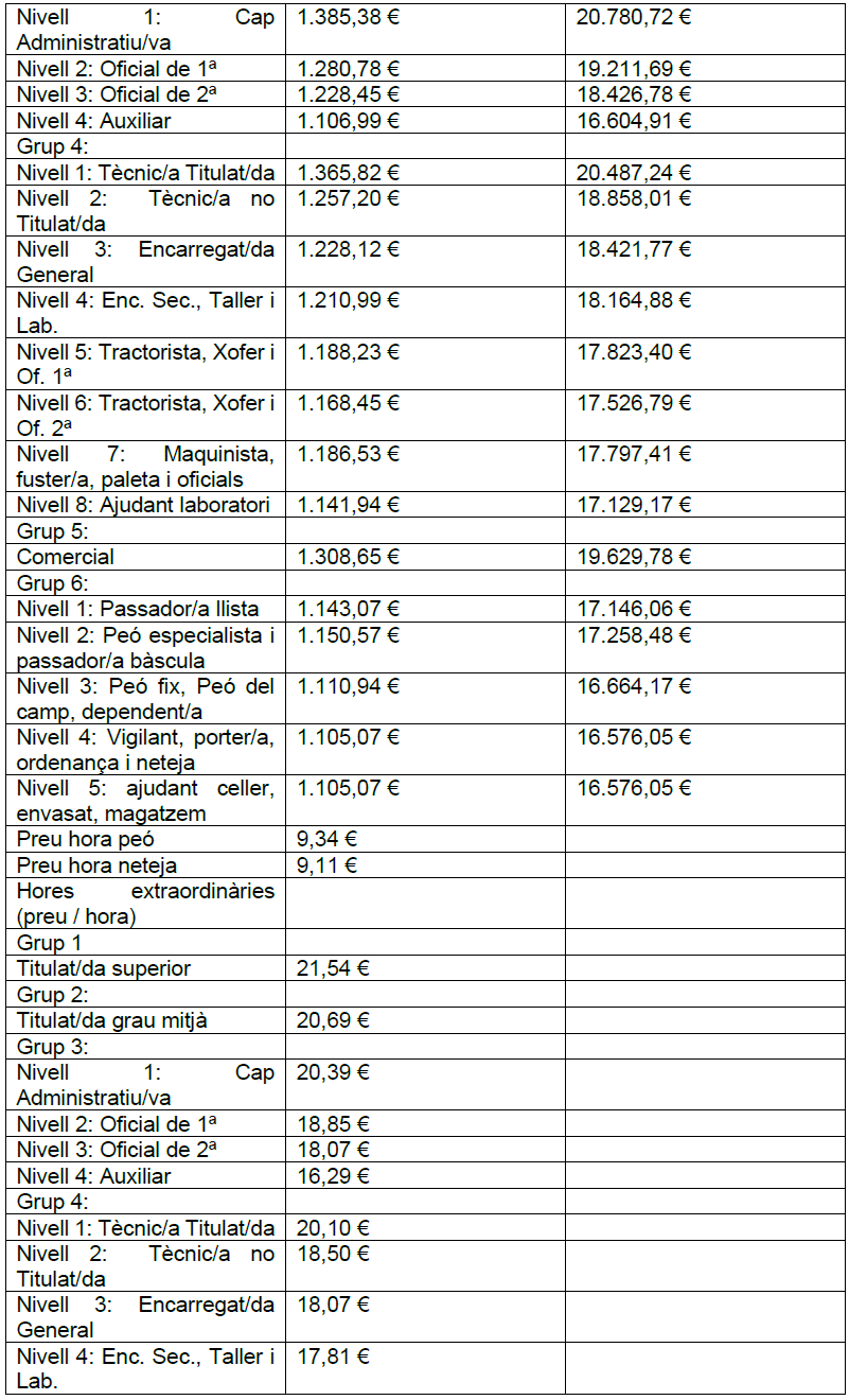 CONVENI COL·LECTIU DE TREBALL DEL SECTOR DE LES COOPERATIVES DEL CAMP DE LA PROVÍNCIA DE TARRAGONA PER ALS ANYS 2025-2027.