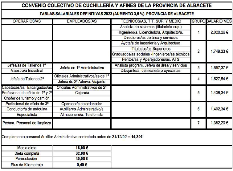 CONVENIO COLECTIVO DE CUCHILLERÍA Y AFINES DE LA PROVINCIA DE ALBACETE 2023/2025.