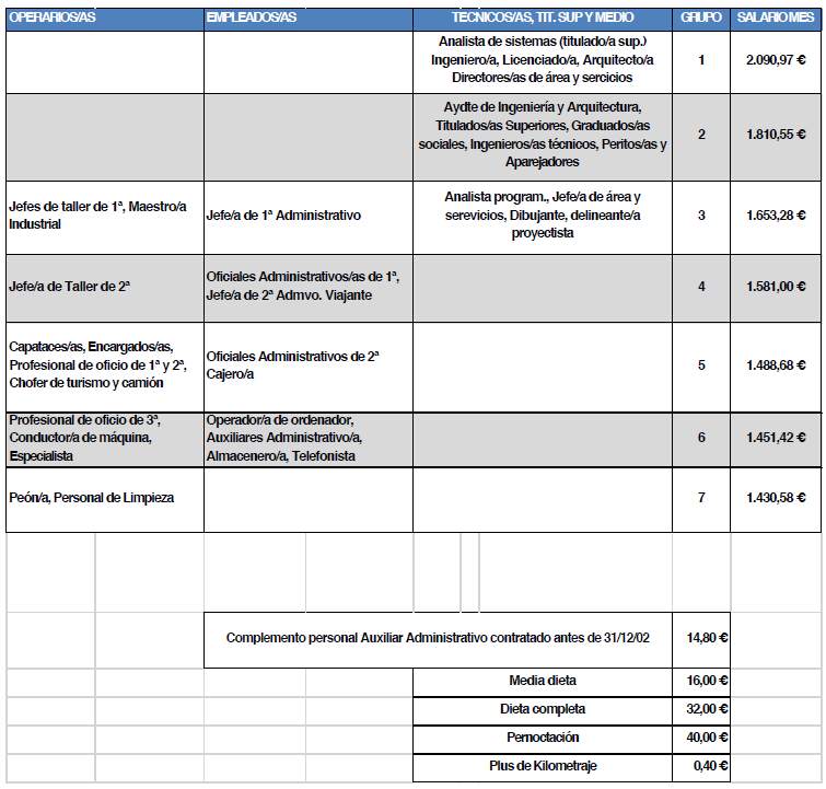 Una vez justificado el gasto realizado, la empresa abonará como máximo (ELIMINAR) a las personas trabajadoras, las siguientes cantidades:
