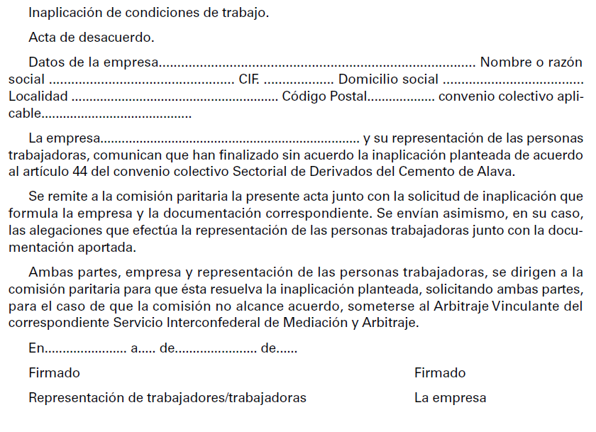 ANEXO III.- Inaplicación de condiciones de trabajo.