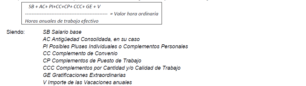 A los efectos de lo dispuesto en el artículo 38 del presente Convenio, la fórmula para determinar el valor hora con el fin de abonar posibles excesos en supuestos de distribución irregular de la jornada será la siguiente: