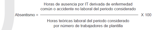 B) Se entenderá por absentismo la falta de trabajo por incapacidad temporal derivada de enfermedad común o accidente no laboral y será el resultado de la fórmula siguiente: