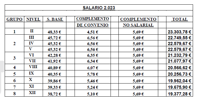 C) Las retribuciones de los trabajadores afectados por este Convenio, para el año 2023, serán las que establecen en la tabla salarial, que como Anexo III se incorpora al mismo, y del que forma parte integrante a todos los efectos, conforme a los niveles o grupos de asimilación establecidos también en dicho anexo. Dichas retribuciones tendrá carácter provisional hasta que se conozca el dato del consumo anual de cemento en España en el año 2023 que determina la aplicación del porcentaje variable establecido en el Convenio General.