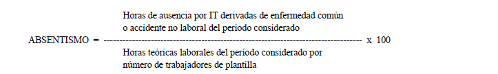 B.- Se entenderá por absentismo la falta al trabajo por incapacidad temporal derivada de enfermedad común o accidente no laboral y será el resultado de la fórmula siguiente: