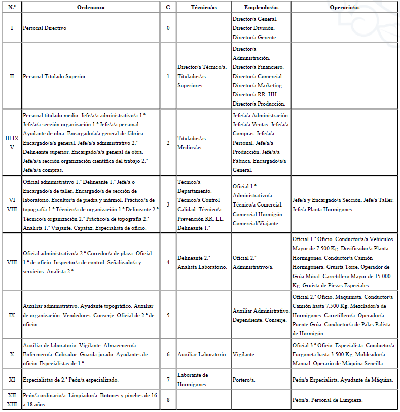 ANEXO II.- CLASIFICACIÓN PROFESIONAL. TABLA ORIENTATIVA