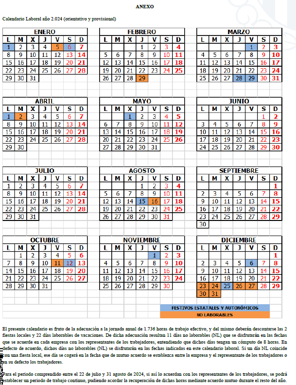 El calendario laboral orientativo se elaborará anualmente por las partes signatarias.