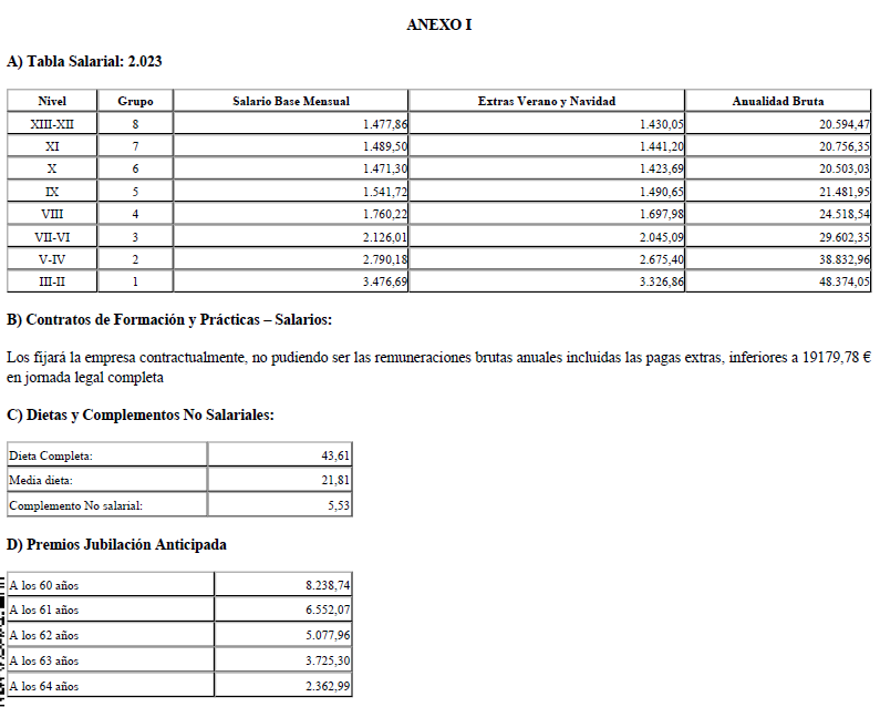 1. El 30 de octubre 2024, la Comisión Negociadora del Convenio colectivo de Derivados del Cemento acordó las tablas salariales para el año 2023 y suscribió la correspondiente acta de la reunión.