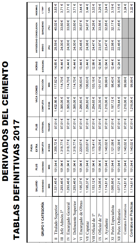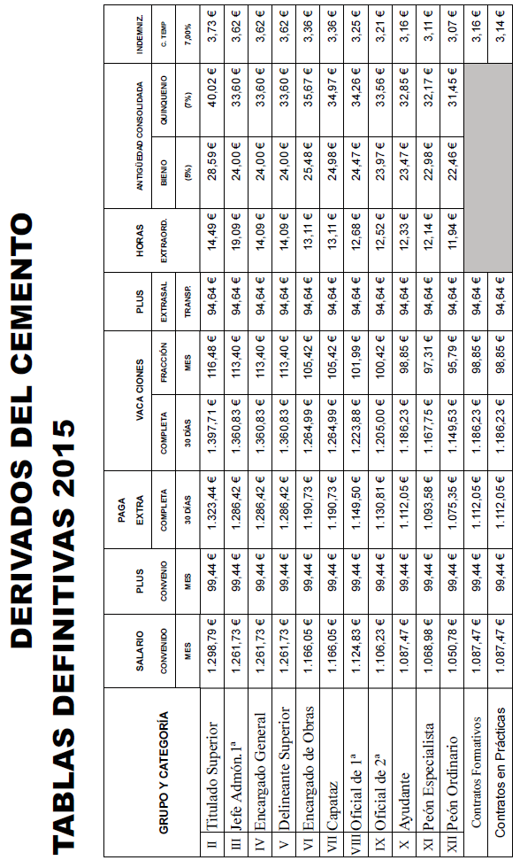 Segundo. Se acuerda por los miembros de la misma la firma de la tabla salarial 2023, que representa un incremento salarial del 1,25 % respecto a las tablas salariales provinciales del año 2022, conforme a lo pactado por la Comisión Negociadora del VII Convenio General del Sector de Derivados del Cemento publicada en el BOE de 14 de julio de 2023.