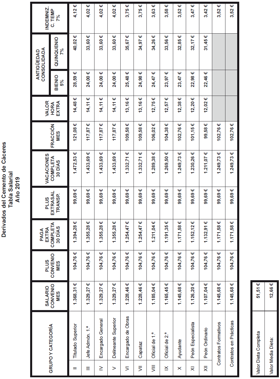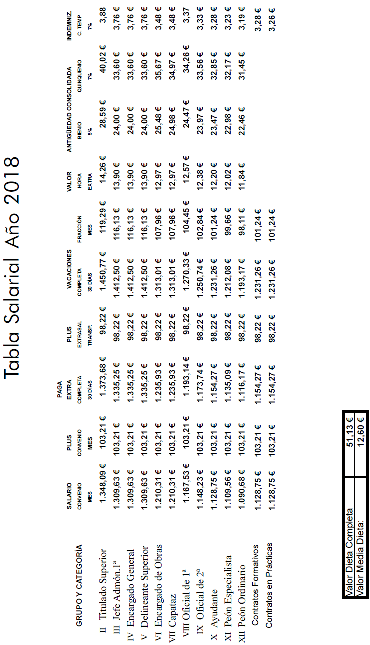 La vigencia de dicha tabla es de aplicación desde el 1 de enero de 2022 y se adjunta como anexo a la presente acta.