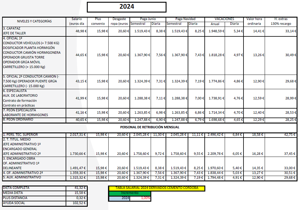 CONVENIO COLECTIVO PROVINCIAL DE DERIVADOS DEL CEMENTO DE CÓRDOBA PARA 2024.