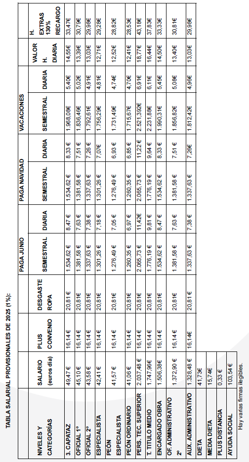 Primero. Proceder a actualizar las tablas salariales con efectos desde 1 de enero de 2025 con un incremento adicional del 1% tomando como referencia el cuadro de incrementos del año 2024.