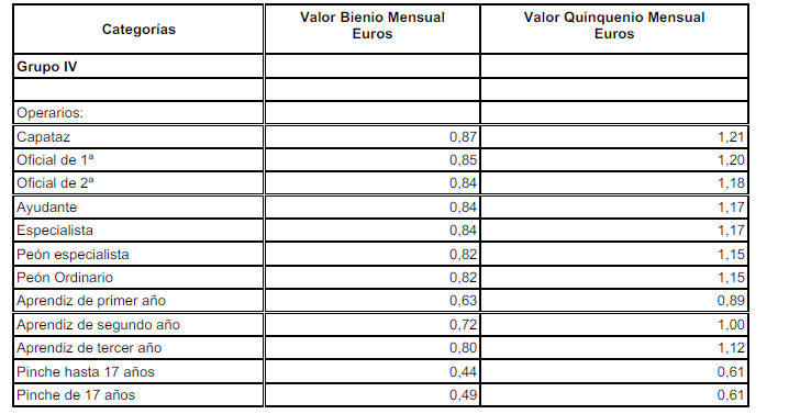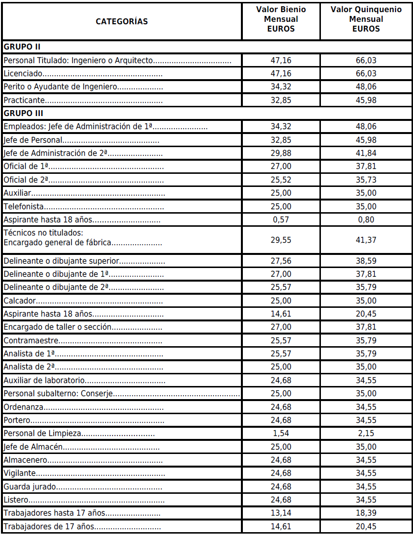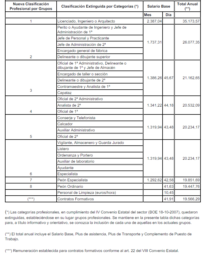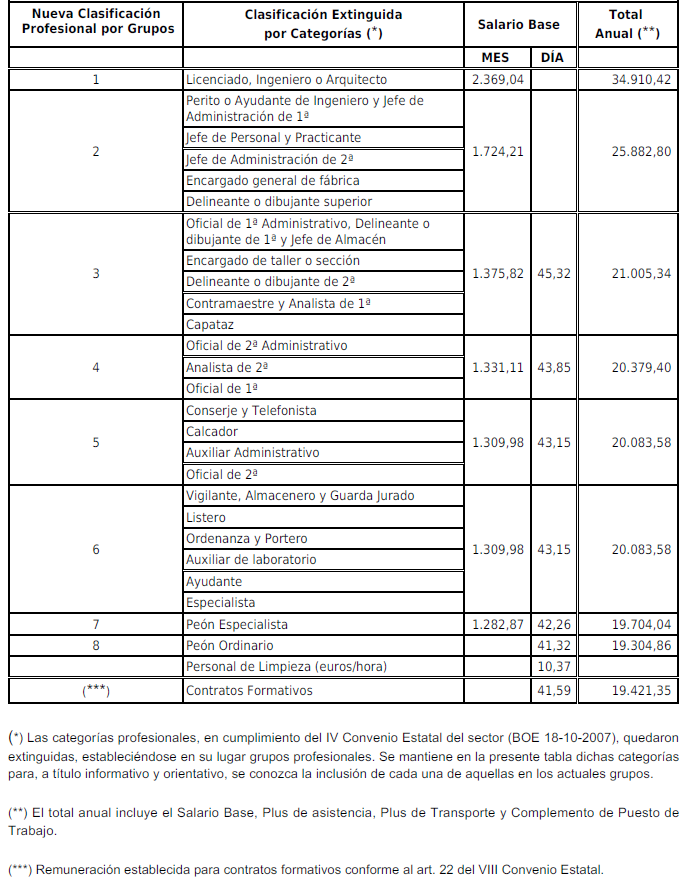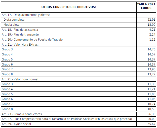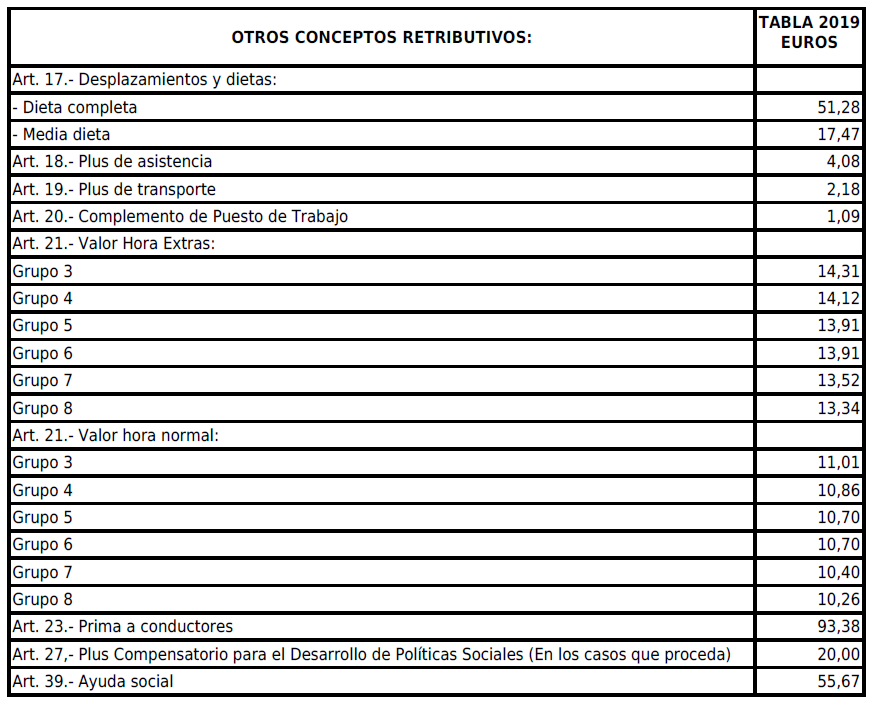 Las cantidades a percibir por los trabajadores serán las establecidas para este concepto en la Tabla Salarial que figura como Anexo I.