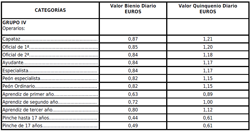 Tablas Salariales del Convenio de Industrias de Derivado del Cemento para los años 2024 y 2025 para la provincia de Jaén.