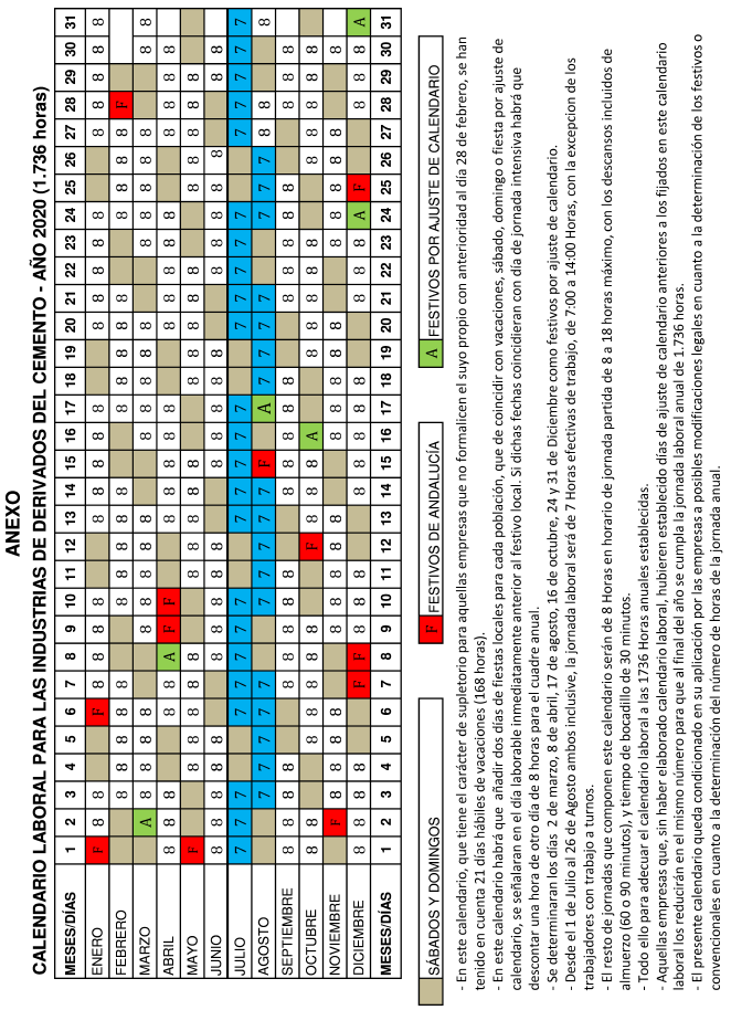 – El presente calendario queda condicionado en su aplicación por las empresas a posibles modificaciones legales en cuanto a la determinación de los festivos o convencionales en cuanto a la determinación del número de horas de la jornada anual.