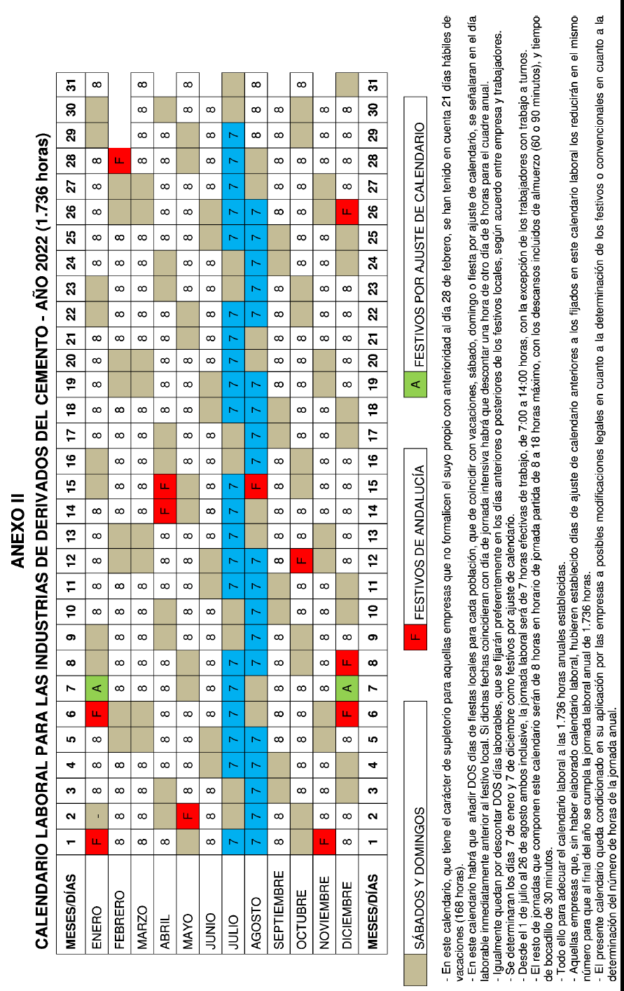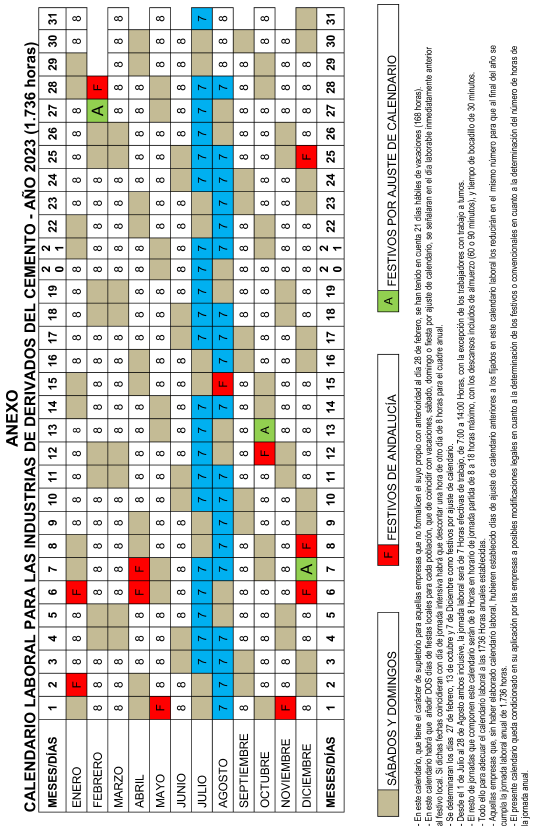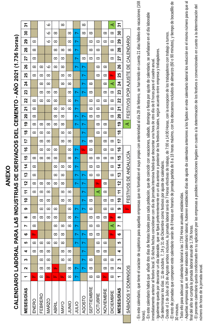 – En este calendario, que tiene el carácter de supletorio para aquellas empresas que no formalicen el suyo propio con anterioridad al día 28 de febrero, se han tenido en cuenta 21 días laborables de vacaciones (168 horas).