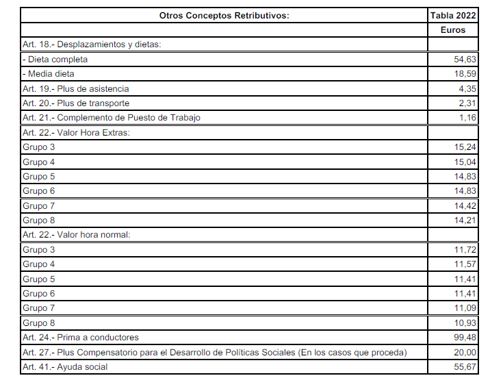 ANEXO I.- Tabla Salarial Definitiva para el año 2022.