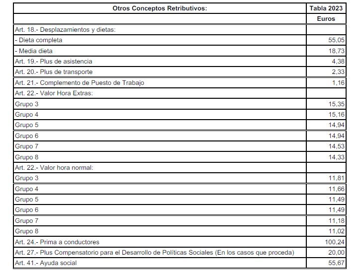 ANEXO II.-Tabla Salarial Provisional para el año 2023.