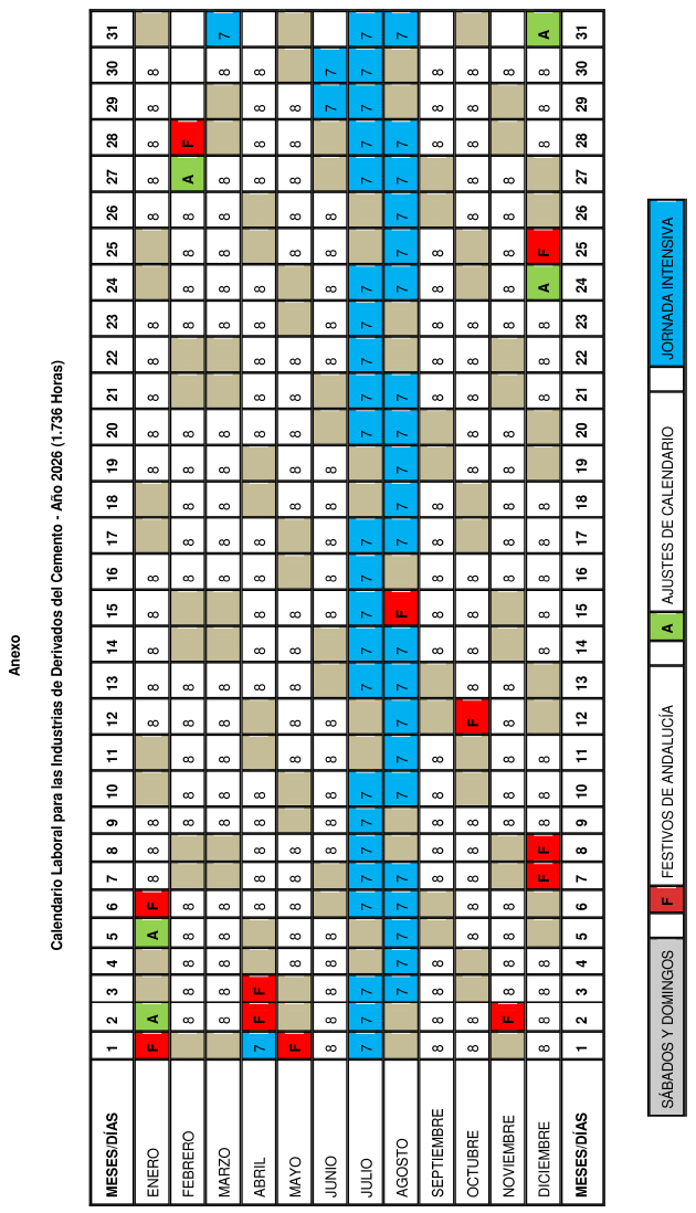 Vista el Acta de fecha 24 de enero de 2025, recibida en el registro de Convenios colectivos, acuerdos colectivos de trabajo y planes de igualdad de esta Delegación Territorial el mismo día 24/01/2025, por la que se aprueba el Calendario laboral para las Industrias de Derivados del Cemento – Año 2025, y de conformidad con lo establecido en el artículo 90 apartados 2 y 3 del Real Decreto Legislativo 2/2015, de 23 de octubre, por el que se aprueba el Texto Refundido de la Ley del Estatuto de los Trabajadores, Real Decreto 713/2010, de 28 de mayo, sobre registro y depósito de convenios colectivos, acuerdos colectivos de trabajo y planes de igualdad; sobre la base de las competencias atribuidas a esta Delegación Territorial por el Real Decreto 4043/82, de 29 de diciembre, sobre Traspaso de Funciones y Servicios de la Administración del Estado a la Junta de Andalucía en materia de Trabajo, Decreto del Presidente 10/2022, de 25 de julio, sobre reestructuración de Consejerías (BOJA extraordinario núm. 25, de 26 de julio), modificado por Decreto del Presidente 13/2022, de 8 de agosto (BOJA extraordinario número 27, de 08 de agosto), en relación con el Decreto 155/2022, de 9 de agosto, por el que se regula la estructura orgánica de la Consejería de Empleo, Empresa y Trabajo Autónomo (BOJA extraordinario número 28, de 11 de agosto), y Decreto 300/2022, de 30 de agosto, por el que se modifica el Decreto 226/2020, de 29 de diciembre, por el que se regula la organización territorial provincial de la Administración de la Junta de Andalucía (BOJA extraordinario número 29, de 30 de agosto), esta Delegación Territorial,