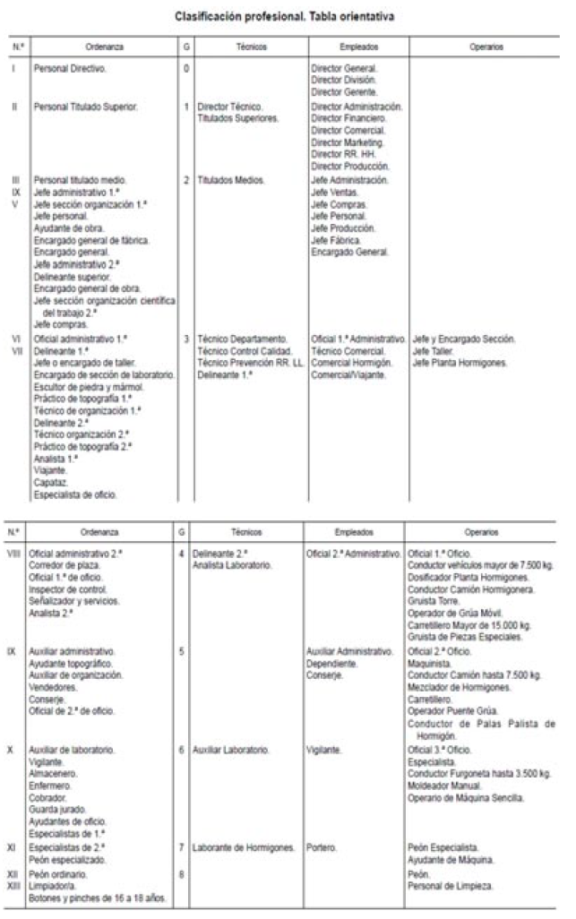 Por tanto, aplicando los factores anteriores, se consiguen 9 Grupos Profesionales numerados del 0 al 8, cuyas características son las siguientes: