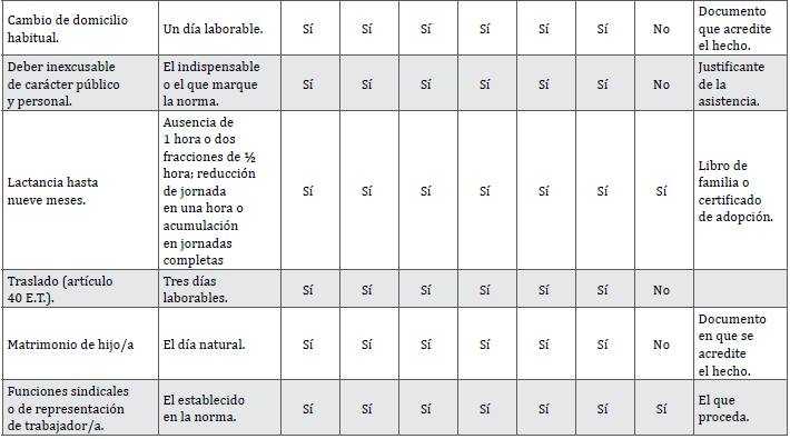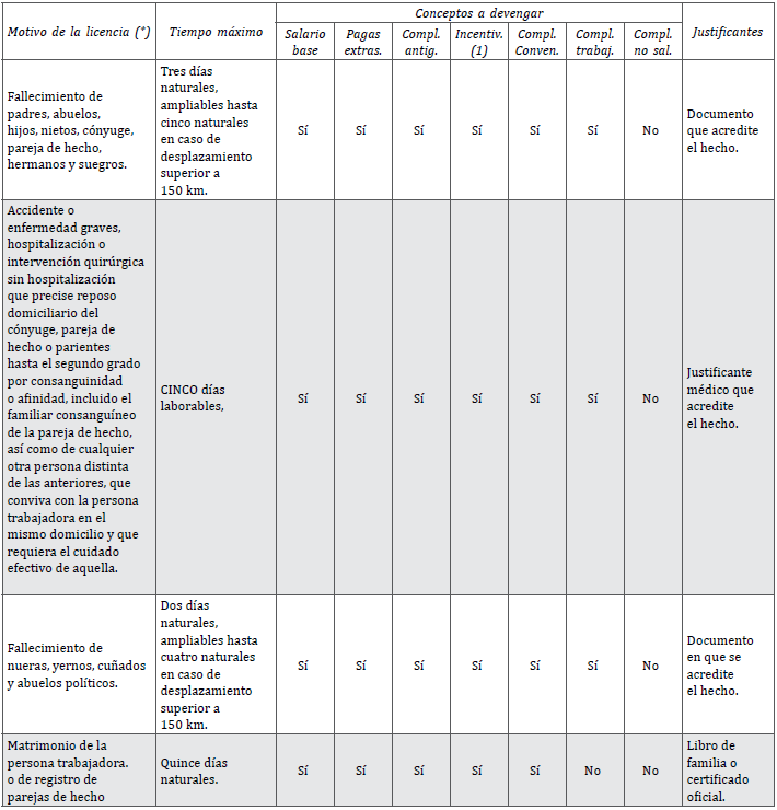 Según lo establecido en el Anexo III del Cuadro de Permisos y Licencias del Convenio Provincial de Derivados de Pontevedra vigente, para los motivos 1 y 3, el tiempo máximo de permiso será el establecido en el artículo 37 del Estatuto de los Trabajadores y su desarrollo normativo vigente, respectando en todo caso la condición más beneficiosa en cada caso según lo establecido en el Convenio o en la actual normativa de desarrollo.