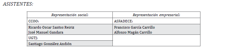 Y no habiendo más asuntos que tratar, siendo las 14:30 horas, y en prueba de conformidad, firman la presente Acta con las tablas salariales que se anexan, en el lugar y fecha arriba indicados.