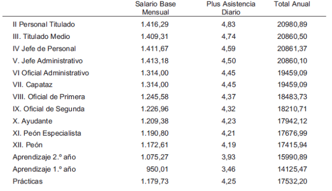 La cuantía de salario base será la que se especifique para cada uno de los grupos, niveles o categorías en las Tablas salariales adjuntas del presente Convenio.
