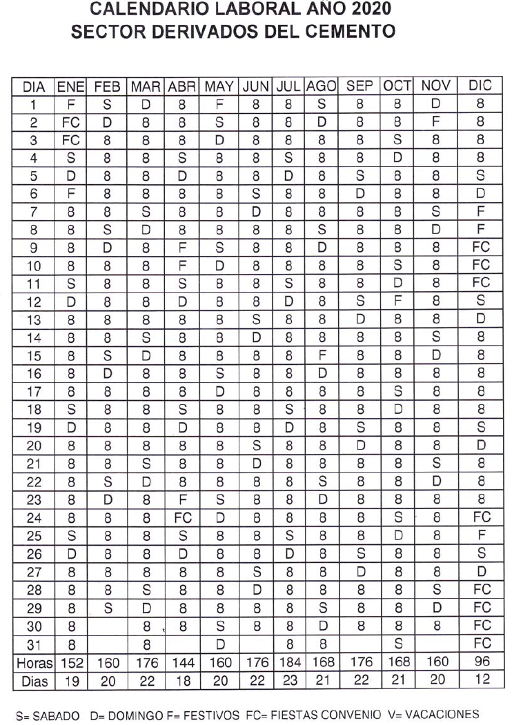 RESOLUCIÓN DE LA OFICINA TERRITORIAL DE TRABAJO DE SEGOVIA POR LA QUE SE ACUERDA LA INSCRIPCIÓN Y PUBLICACIÓN DEL CALENDARIO LABORAL PARA EL AÑO 2020 DEL SECTOR DE DERIVADOS DEL CEMENTO EN LA PROVINCIA DE SEGOVIA.
