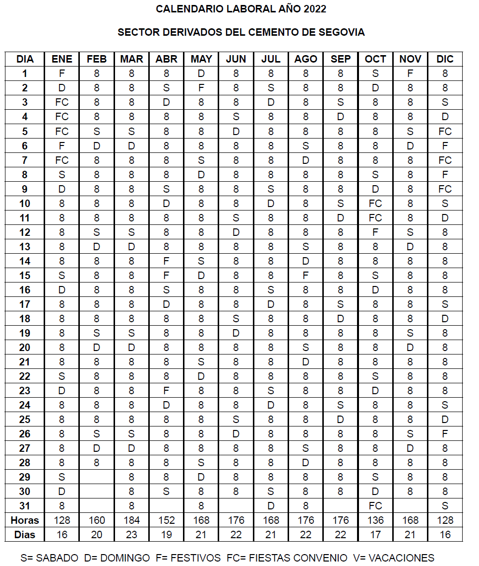 RESOLUCIÓN DE LA OFICINA TERRITORIAL DE TRABAJO DE SEGOVIA POR LA QUE SE ACUERDA LA INSCRIPCIÓN Y PUBLICACIÓN DEL CALENDARIO LABORAL PARA EL AÑO 2022 DEL SECTOR DE DERIVADOS DEL CEMENTO EN LA PROVINCIA DE SEGOVIA.