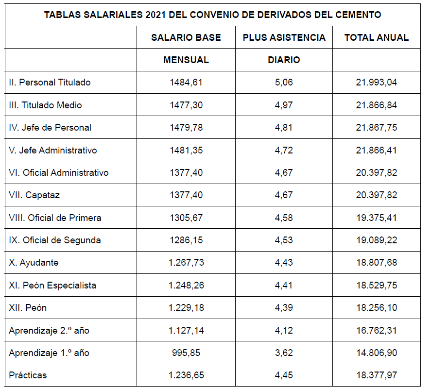 RESOLUCIÓN DE LA OFICINA TERRITORIAL DE TRABAJO DE SEGOVIA POR LA QUE SE ACUERDA LA INSCRIPCIÓN Y PUBLICACIÓN DE LAS TABLAS SALARIALES PARA EL AÑO 2021 DEL SECTOR DE DERIVADOS DEL CEMENTO EN LA PROVINCIA DE SEGOVIA.