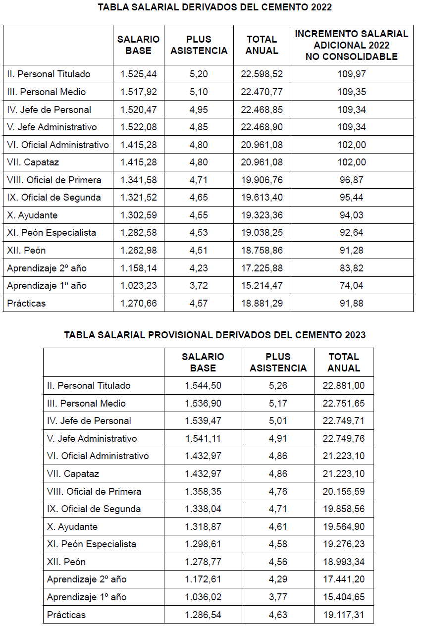RESOLUCIÓN DE LA OFICINA TERRITORIAL DE TRABAJO DE SEGOVIA POR LA QUE SE ACUERDA LA INSCRIPCIÓN EN EL REGISTRO DE CONVENIOS COLECTIVOS, EL DEPÓSITO Y PUBLICACIÓN DE LAS TABLAS SALARIALES LOS AÑOS 2022-2024 DEL SECTOR DE DERIVADOS DEL CEMENTO EN LA PROVINCIA DE SEGOVIA.