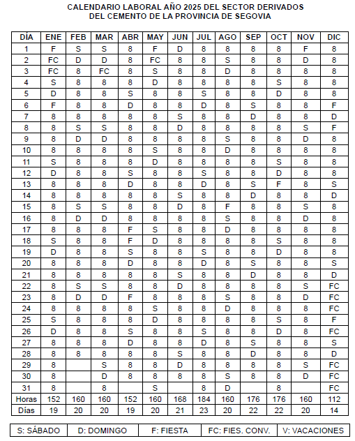 RESOLUCIÓN DE LA OFICINA TERRITORIAL DE TRABAJO DE SEGOVIA POR LA QUE SE ORDENA LA INSCRIPCIÓN EN EL REGISTRO DE CONVENIOS COLECTIVOS DE TRABAJO, EL DEPÓSITO Y LA PUBLICACIÓN DEL CALENDARIO LABORAL PARA EL AÑO 2025 DE LAS EMPRESAS DEL SECTOR DE DERIVADOS DEL CEMENTO EN LA PROVINCIA DE SEGOVIA.