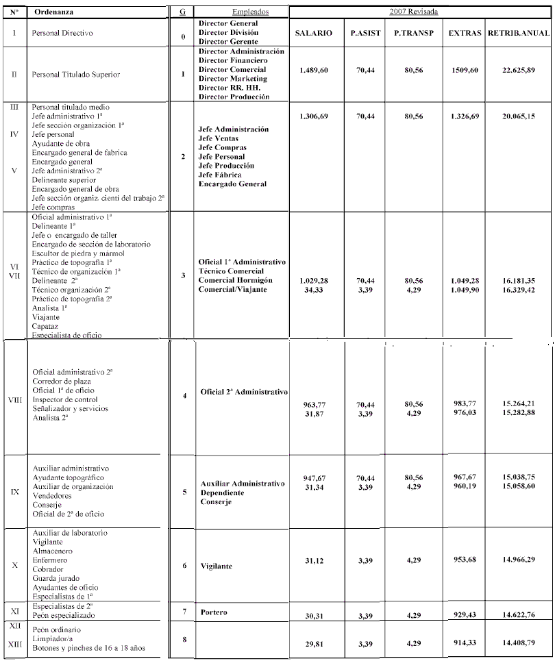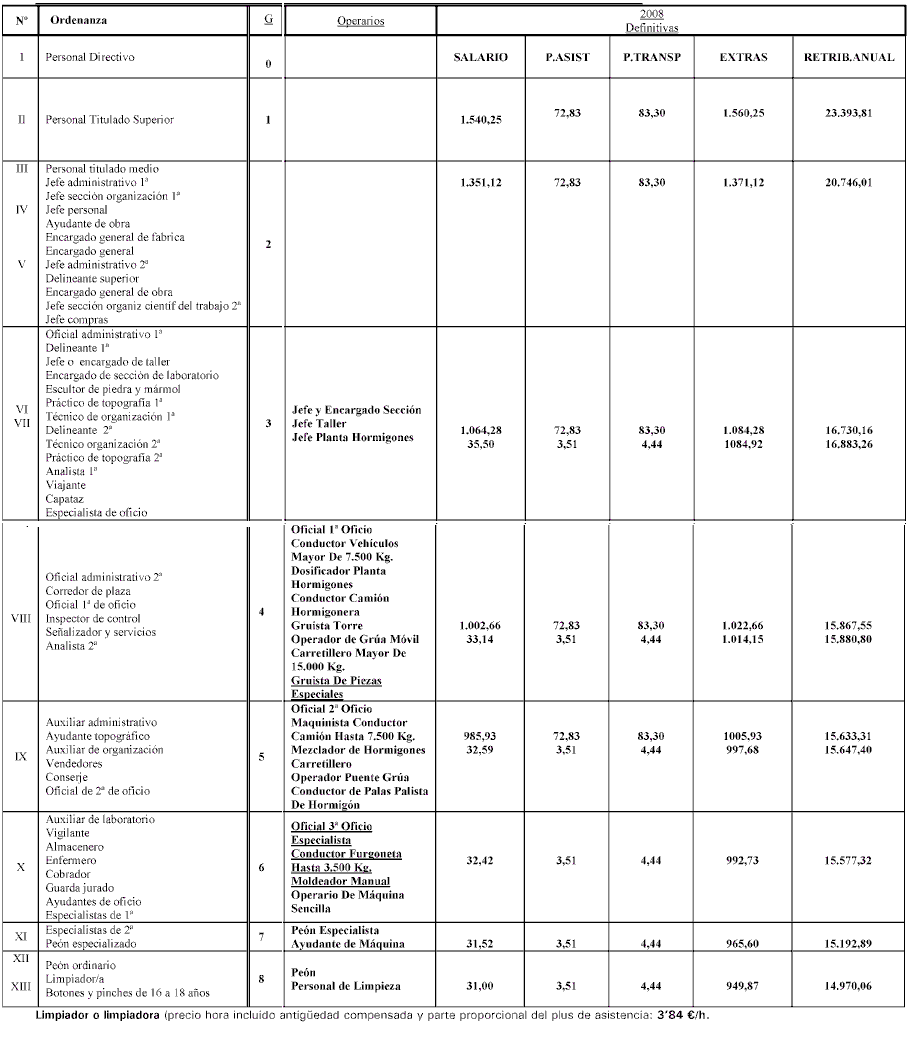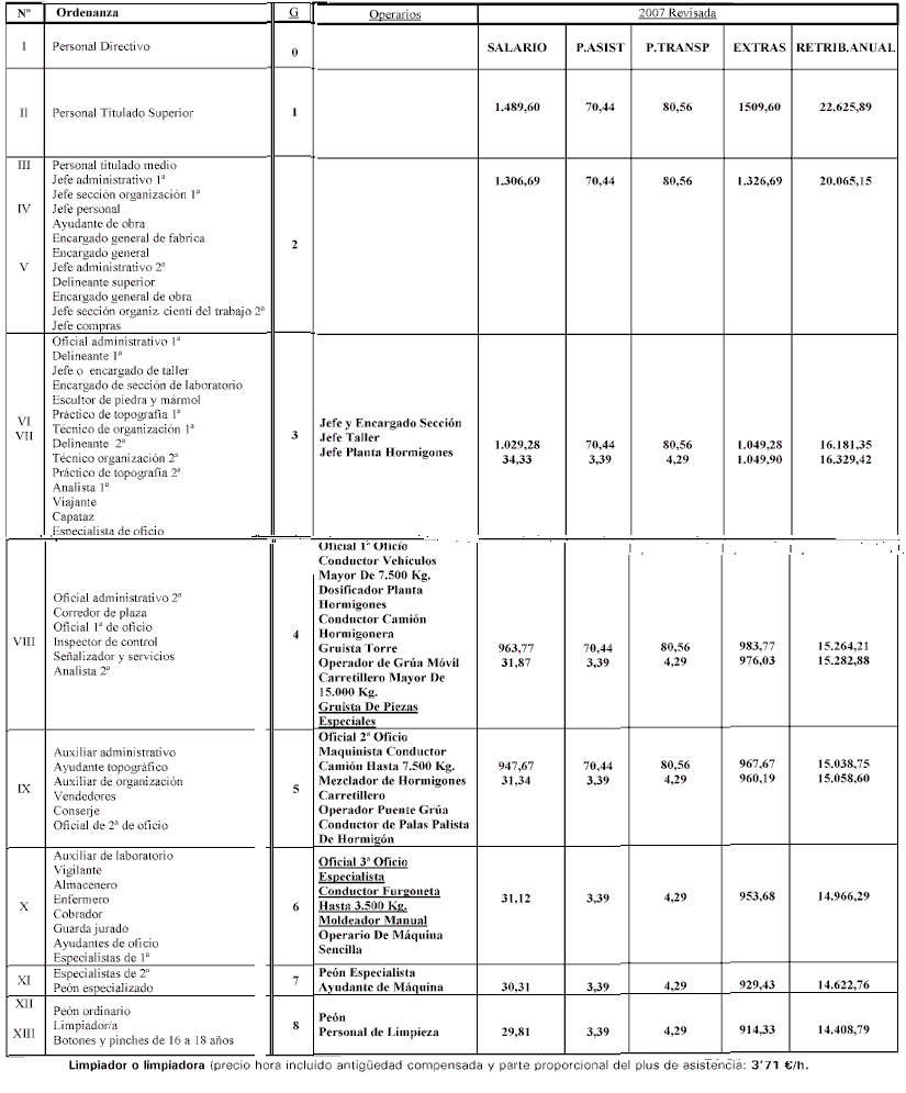 Este importe se adicionará a las tablas que han estado vigentes en 2007, y el resultado así obtenido, se le aplicará el 3,4% (IPC previsto + 1,4%) dando como resultado el incremento salarial para el año 2008, y en su caso regularizarse conforme a las tablas salariales mínimas establecidas a nivel nacional.