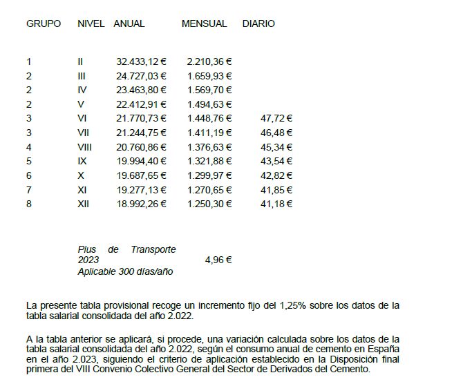 TABLA SALARIAL PROVISIONAL AÑO 2.023.