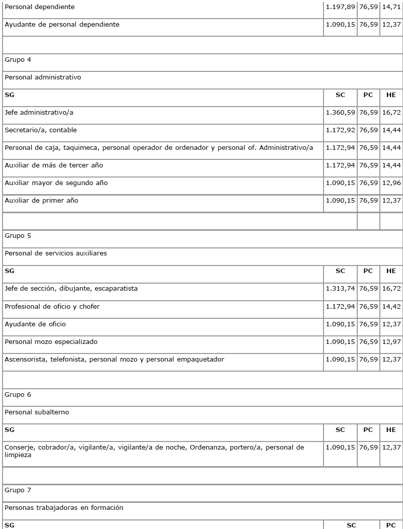 – Personal de caja, taquimeca, personal operador de ordenador y personal oficial administrativo.