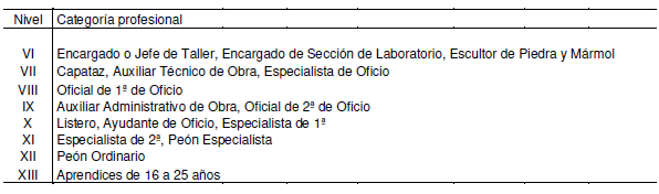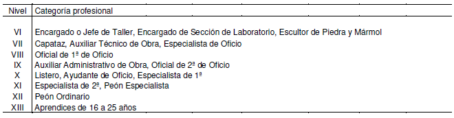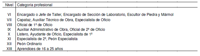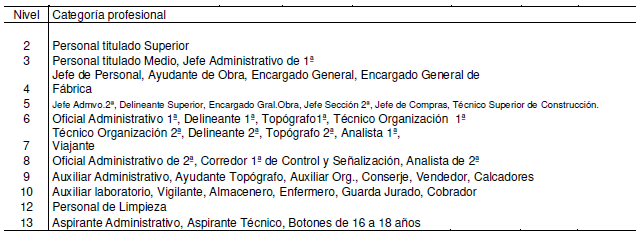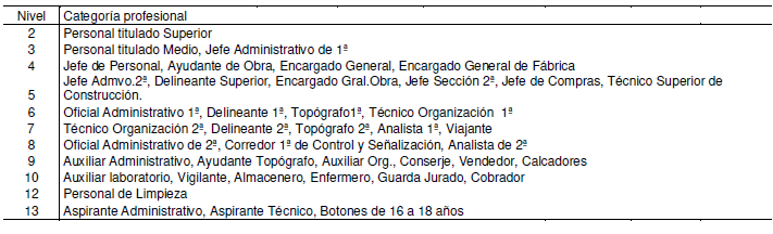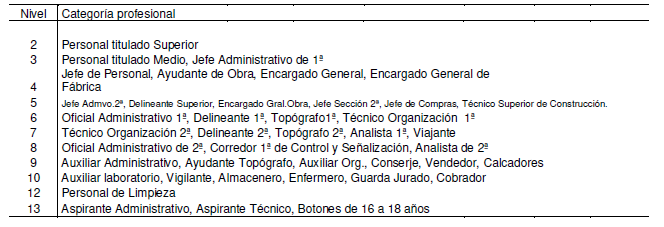 3. El salario base para las categorías profesionales del Grupo 1, Nivel XII; Grupo 2, Niveles IX y XI; Grupo 3, Niveles IX y X, Grupo 4, Niveles VII y VIII; y Grupo 5, Nivel V, será el que, para cada una de las categorías profesionales antedichas en la Tabla de Salarios, sin que les sea de aplicación las señaladas en dicha tabla salarial para los niveles de encuadramiento, de cada una de ellas.