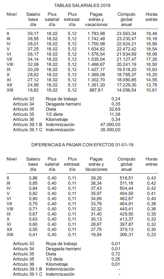 Y en prueba de conformidad, previa redacción y lectura, las partes firman la presente acta, en el lugar y fecha indicados, así como las nuevas tablas salariales que se adjuntan, a todos los efectos y para su remisión a la autoridad Laboral y posterior publicación en el BOLETÍN OFICIAL DE LA PROVINCIA, si se estima conveniente.