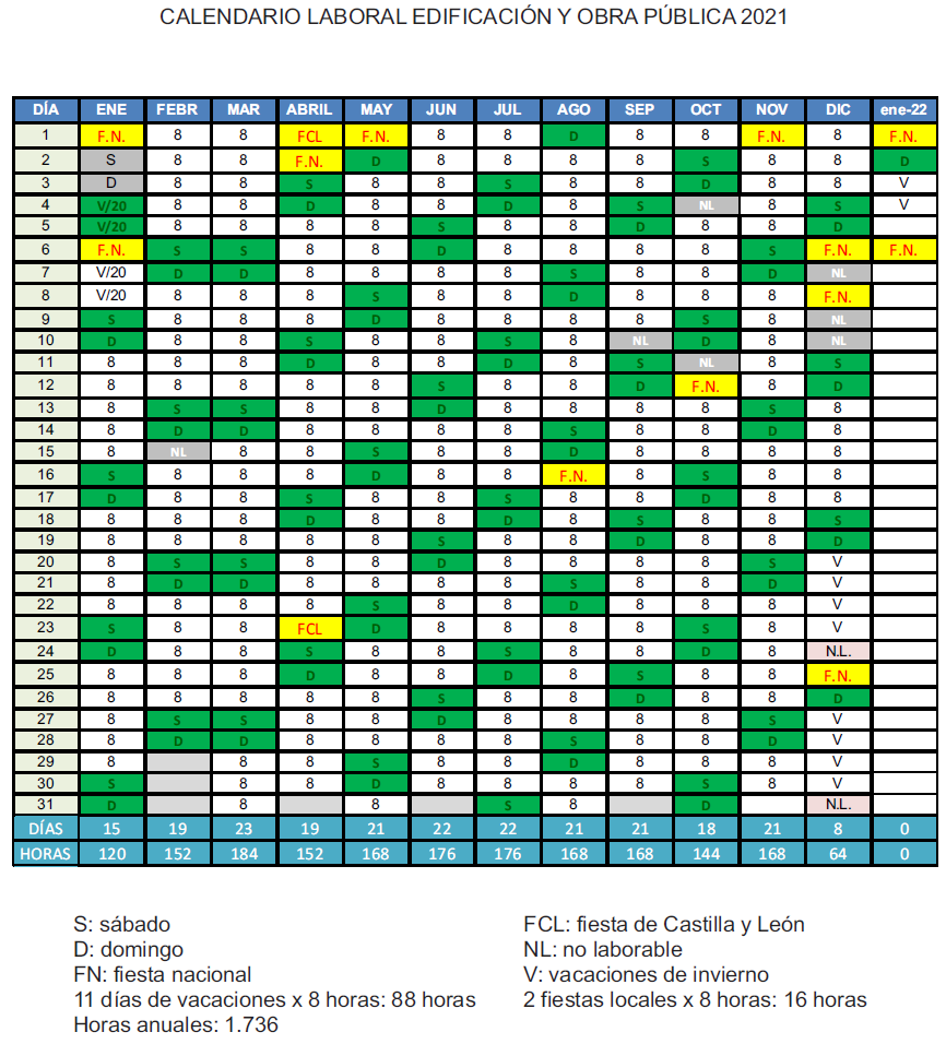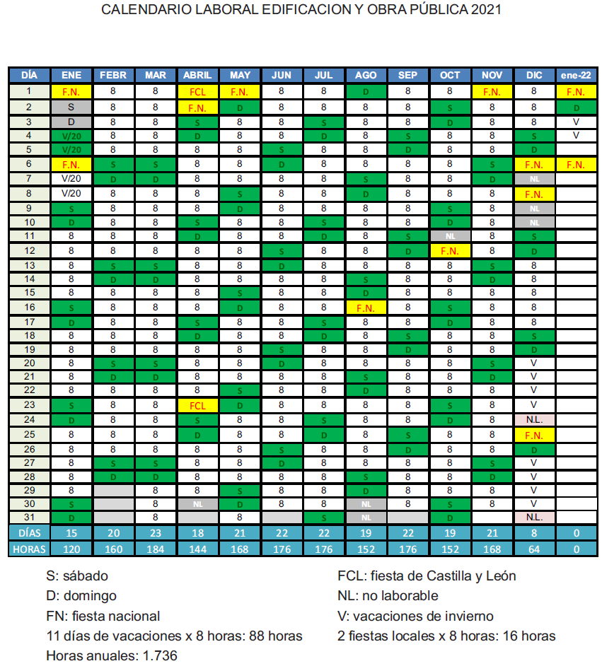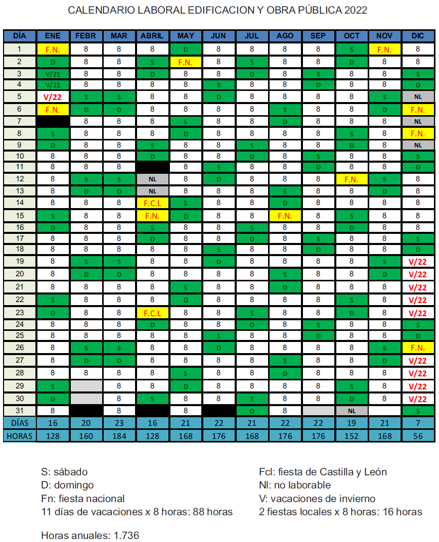 Calendario laboral 2022 del convenio colectivo de Trabajo del sector de Edificación y obras Públicas resolución de 22 de diciembre de 2021, de la oficina Territorial de Trabajo de la Delegación Territorial de León de la Junta de castilla y León, por la que se dispone la inscripción en el registro y depósito de convenios colectivos, acuerdos colectivos de trabajo y planes de igualdad con funcionamiento a través de medios electrónicos de Castilla y León (REGCON) y la publicación del calendario laboral para el año 2022 del convenio colectivo de Trabajo, de ámbito provincial, del sector de Edificación y obras Públicas de León (nº convenio 24002005011980).