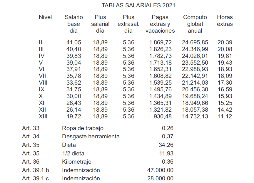 Primero.- aprobar el incremento salarial para el año 2021, incrementando las tablas salariales vigentes durante el año 2020 en un 2,5%, siendo las tablas resultantes las vigentes para todo el año 2021.