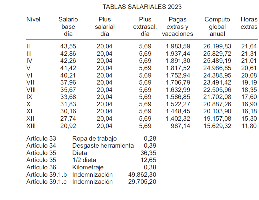 Primero.- aprobar el calendario laboral para el año 202 Y en prueba de conformidad, previa redacción y lectura, las partes firman la presente acta, en el lugar y fecha indicados, así como las nuevas tablas salariales que se adjuntan, a todos los efectos y para su remisión a la autoridad Laboral y posterior publicación en el BOLETÍN OFICIAL DE LA PROVINCIA, si se estima conveniente.