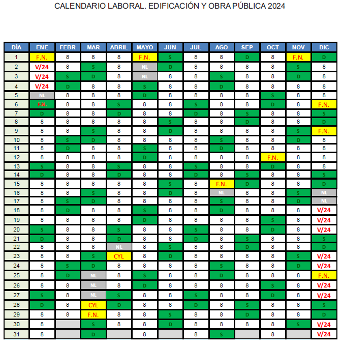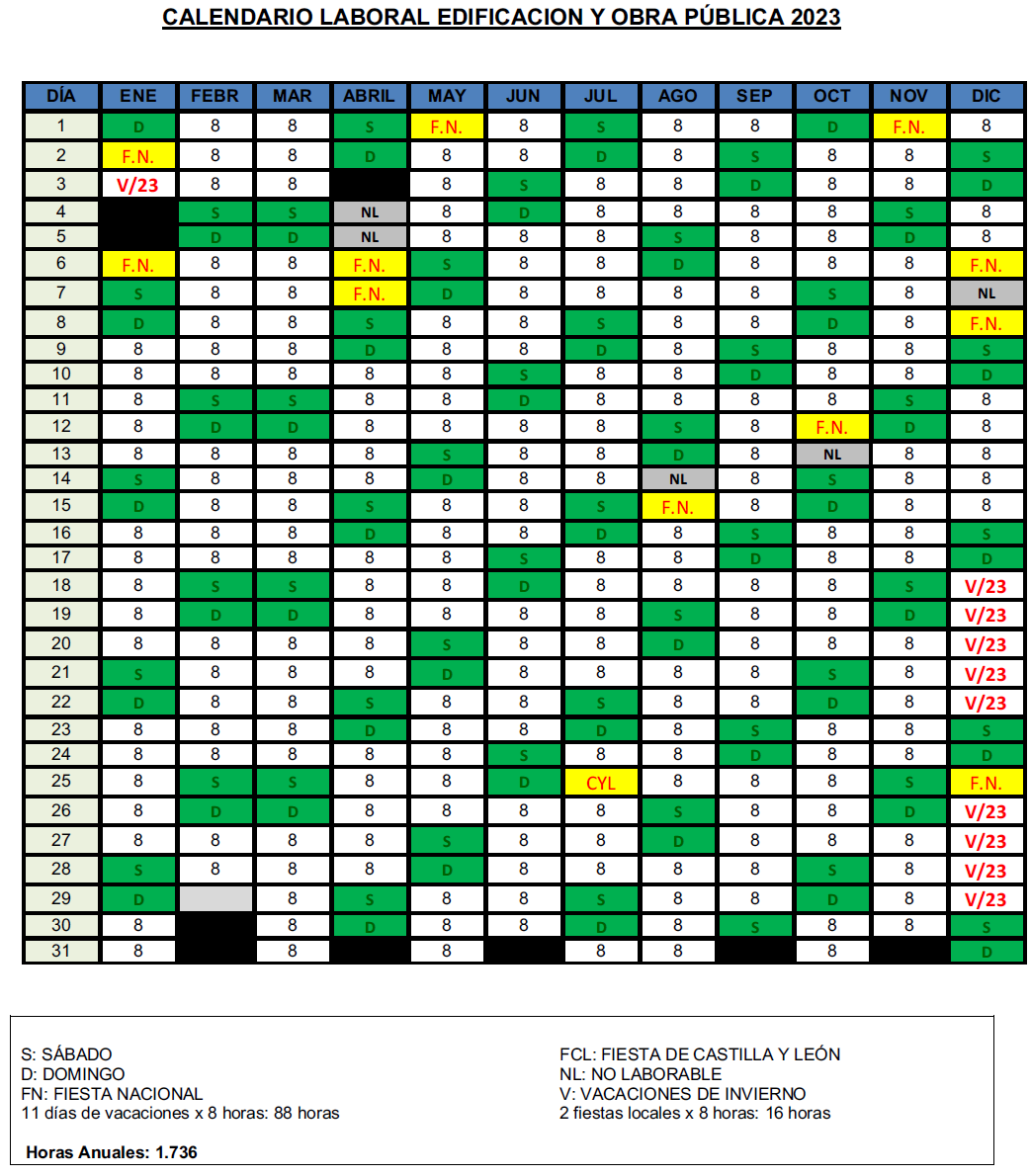 Calendario laboral del año 2023 del convenio colectivo de Edificación y obras Públicas.