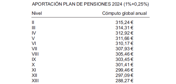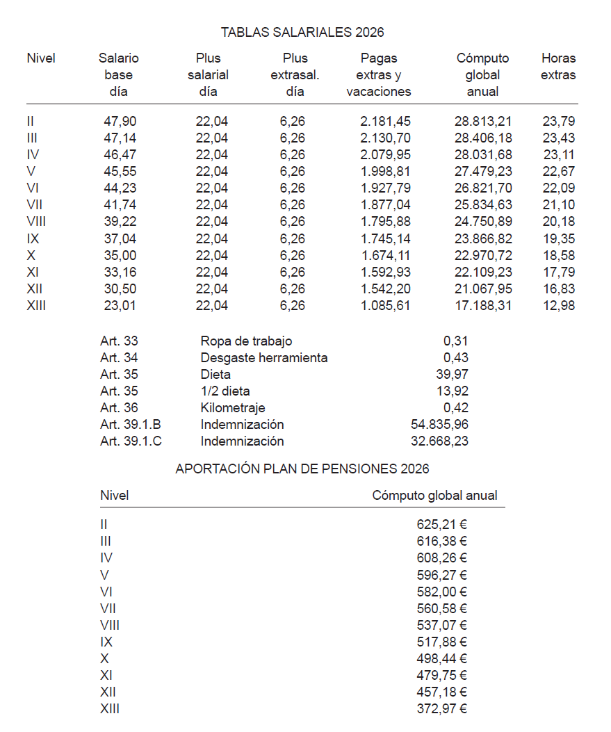 Asimismo, y para el año 2026 se ha establecido un incremento de la tabla de salarios del 3% y una contribución al plan de pensiones del 0,25%.