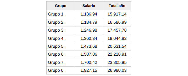 – Año 2024: Un aumento definitivo del salario base del 31-12-2023 del 4 % con efectos retroactivos al 01 de enero de 2024. Se adjuntan tablas.