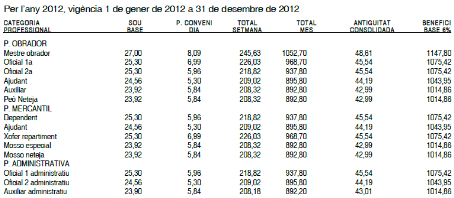 A) Increment salarial Per a l’any 2012, l’increment salarial serà del 0,20 % respecte les taules salarials vigents a 31 de desembre de 2011, els imports del qual figuren incrementats a la taula salarial annexa I d’aquest Conveni col·lectiu.