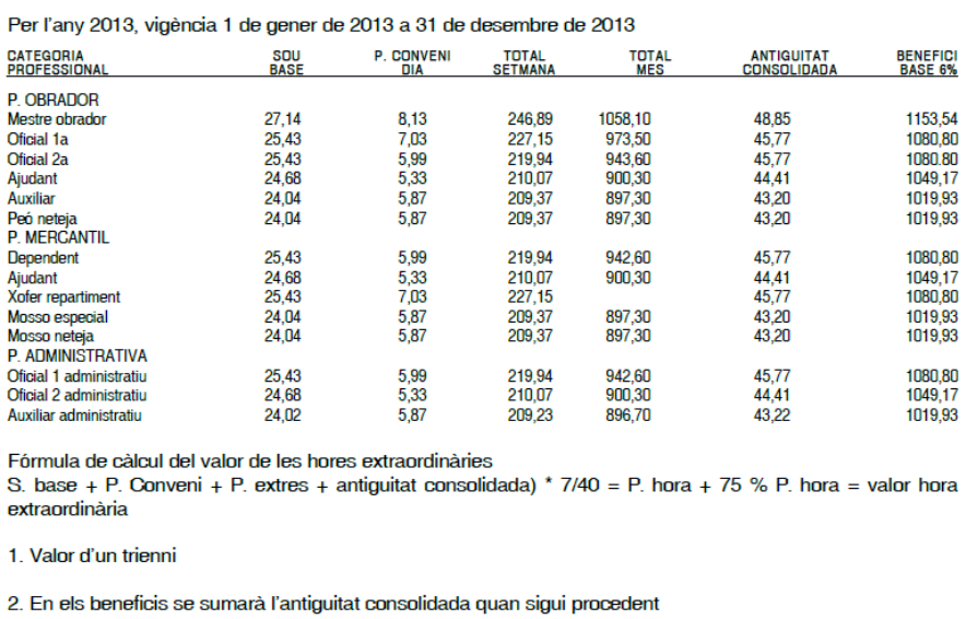Per a l’any 2013, l’increment salarial serà del 0,50% respecte les taules salarials que figuren a l’Annex I del present Conveni, els imports dels quals figuren incrementats a la taula salarial annexa I del present Conveni.