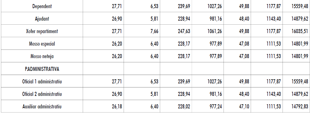 El sistema retributiu s’estructura en els següents conceptes: